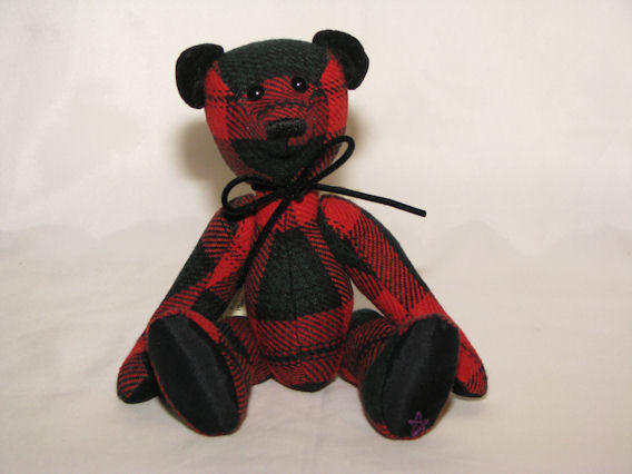 “Ely” is one of the seven teddy bears made from Marian Kreger’s favorite red tartan blazer. December 2010 |