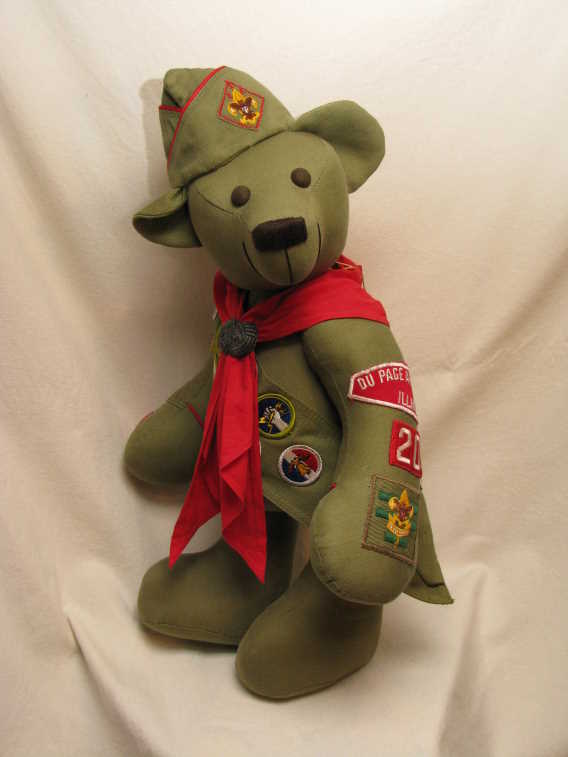 Eagle is a special teddy bear made from Don’s Boy Scout uniform. The head and arms are made from the shirt and the body and legs are from the trousers.