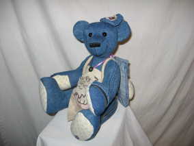 This bear is made from Jody's denim Jacket.