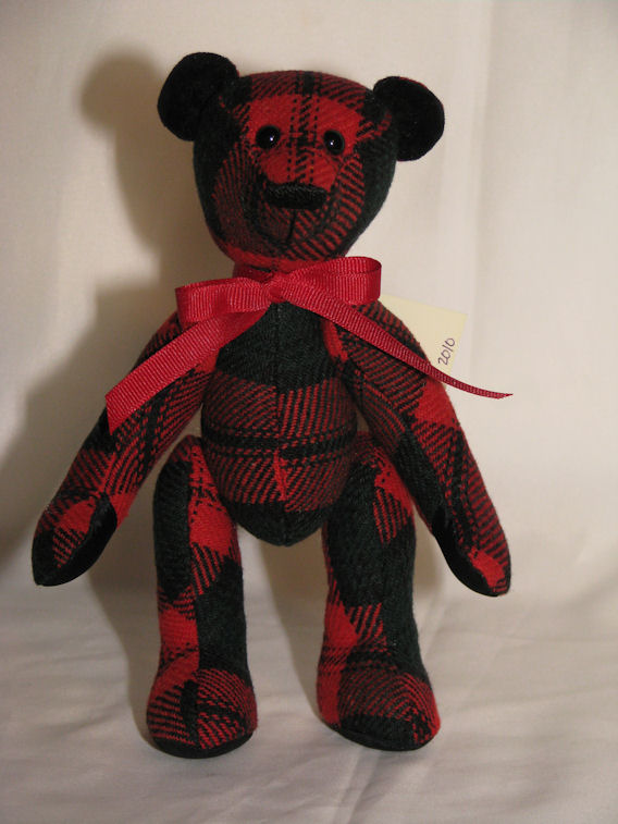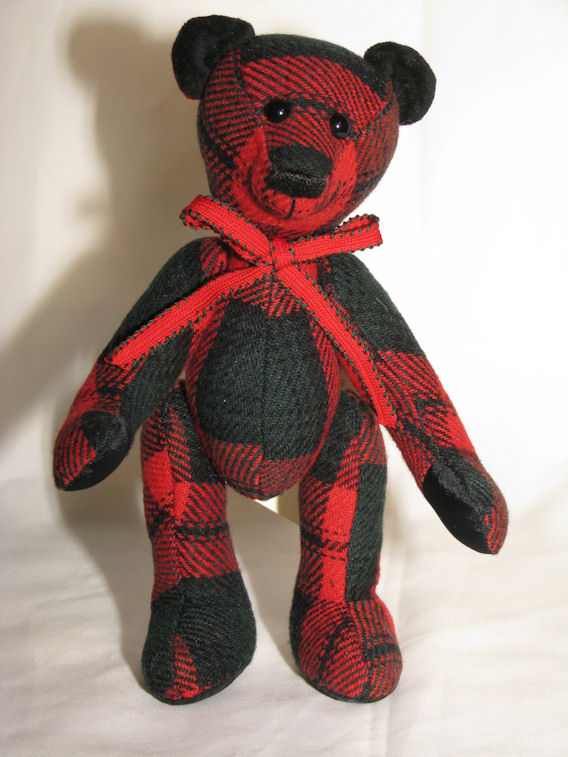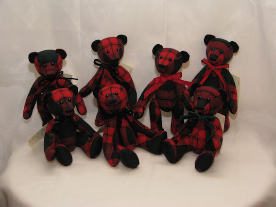 These bears are made from Marian Kreger’s favorite red tartan blazer. The inner ears are made from the blazer’s collar and the paw pads from the blazer’s lining.