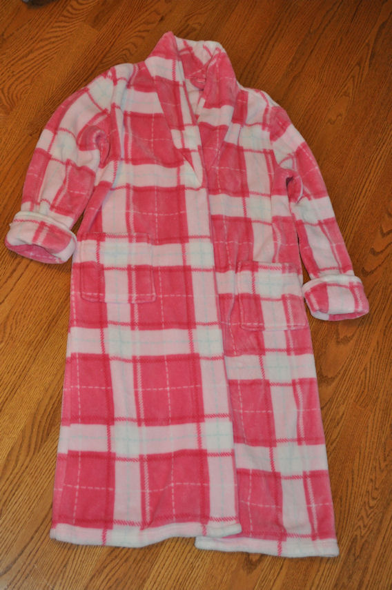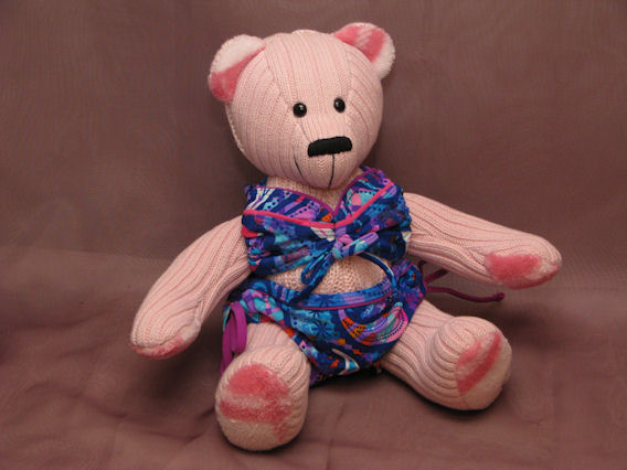 The teddy’s paw pads and inner ears are made from Peggy’s fuzzy bath robe. |