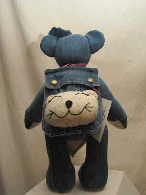 This bear is made from Jody's denim Jacket.