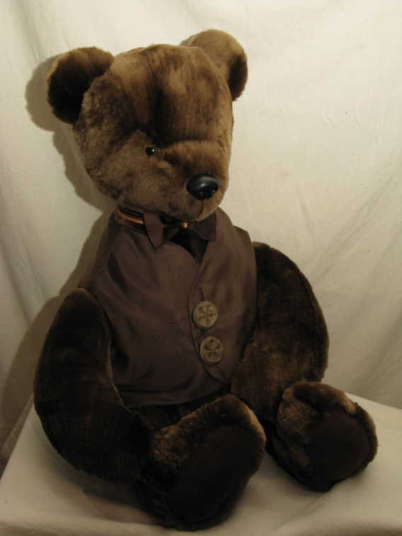 Perry is named after another big Bear, William "the refrigerator". Perry is made from Nancy Penney's beaver coat. His vest is made from the coat's lining and the underside of the vest includes the coat's label and mongram. Perry's bowtie is made from the coat's original lining, found in the pockets. Perry is unjointed and is 26 inches tall.
